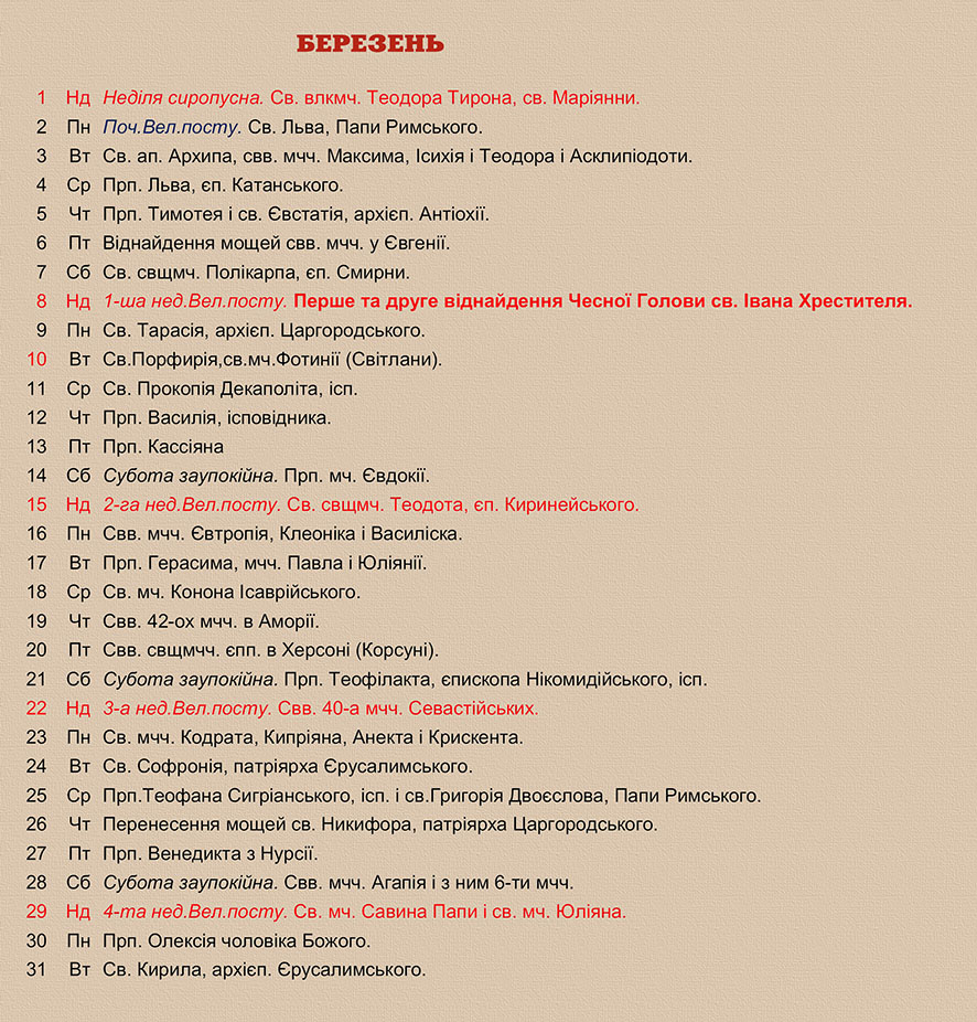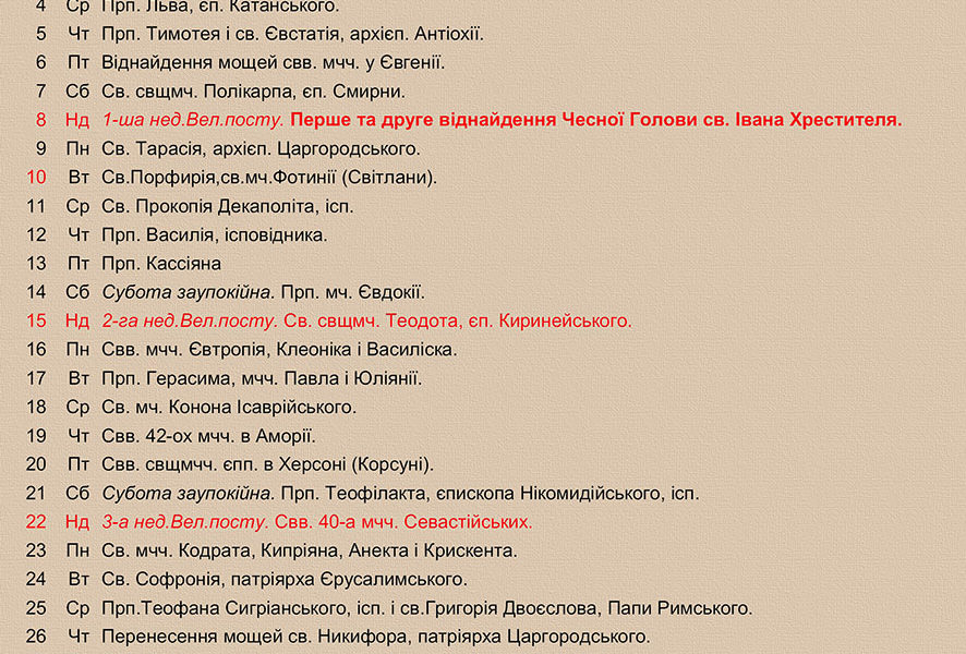 Розклад Богослужінь