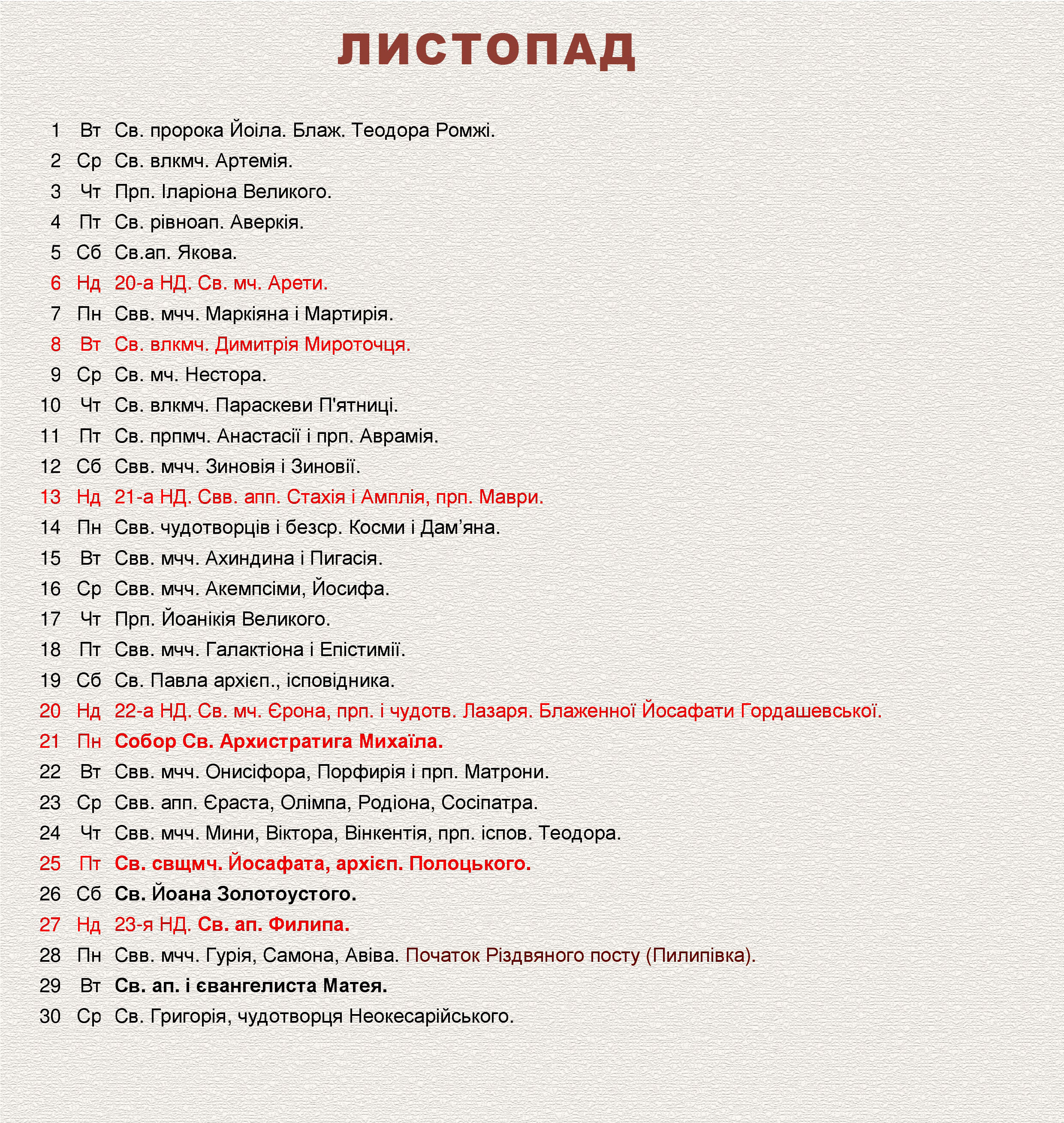 Розклад Богослужінь